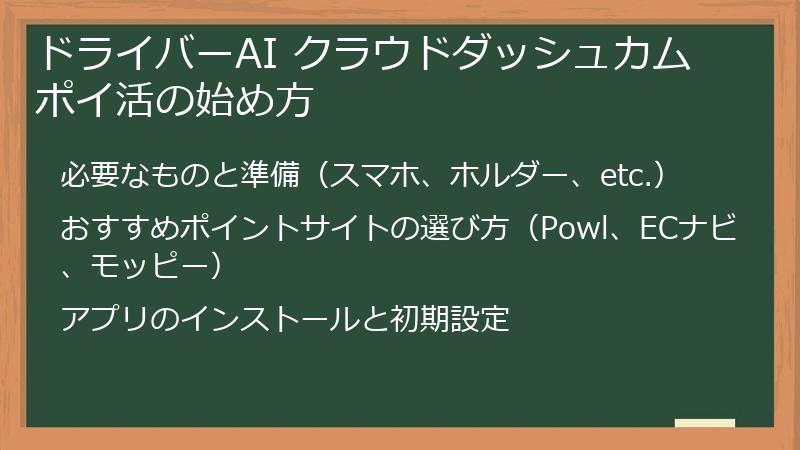 以上で、2つ目の大見出し「ドライバーAI クラウドダッシュカム ポイ活で賢く稼ぐ!完全攻略ガイド」の解説を終わります。