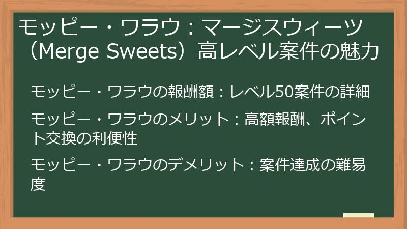 「マージスウィーツ(Merge Sweets)」は、マージパズルゲームとしてだけでなく、ポイ活案件としても非常に人気があります。